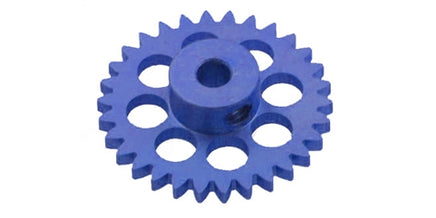 Sloting Plus 28 Tooth 16.8mm Diameter Light Weight High Strength Duraluminum SIDEWINDER Axle Gear for 3/32" (2.37mm) axle - 2.5mm setscrew used for larger hex size to prevent stripping of hex wrench sometimes an issue with M2 size setscrews - 1 gear per package with setscrew - BLUE Z28