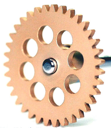 Sloting Plus 35 Tooth 19mm Diameter Light Weight High Strength Duraluminum SIDEWINDER Axle Gear for 3/32" (2.37mm) axle - 2.5mm setscrew used for larger hex size to prevent stripping of hex wrench sometimes an issue with M2 size setscrews - 1 gear per package with setscrew - GOLD Z35