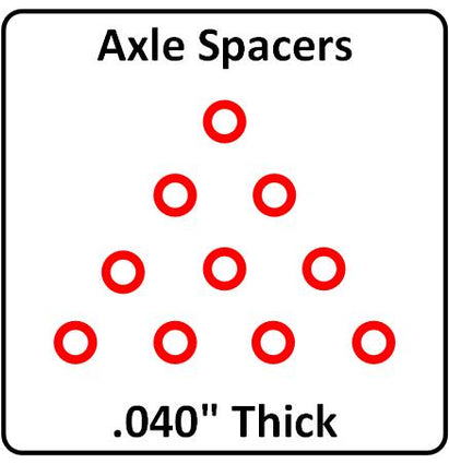 Note: Slot Car Corner offers high-quality 3/32" low-friction NYLON axle spacers in six (6) different thicknesses that are color-coded for easier identification.