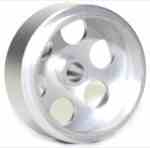 Sloting Plus Universal Wheels for 3/32" (2.37mm) axles - 14.6 x 8mm wide - Natural silver matte finished aluminum/magnesium alloy - light weight 1.1g with setscrew - M2.5 setscrews for larger hex size to prevent stripping of hex wrench sometimes an issue with M2 size setscrews - 2 wheels per package with setscrews