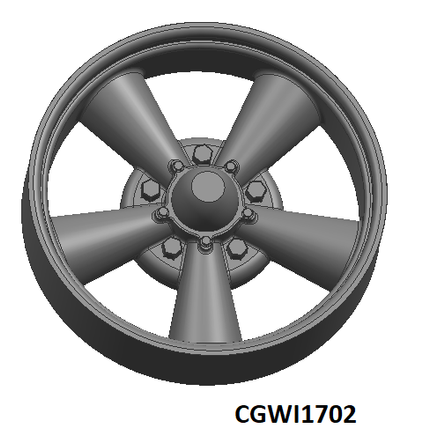 CG Slotcars 5-Spoke Torq Thrust Wheel Inserts (Trans-Am era) for 17mm wheels. These fit 17mm insert wheels from several manufacturers including C.B. Design, Slot.it, etc... Package of four (4) inserts.