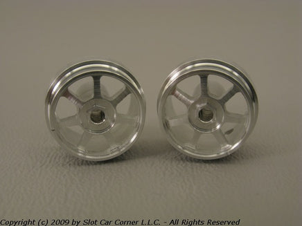 True LMP design complements a wide variety of 1/32 slot cars makes and models (see photo gallery at top of page for examples). These wheels feature a unique simulated center retaining nut to further enhance the appearance and realism of the wheel .