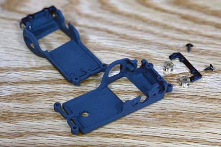 CGMP22A Microcarbon Sidewinder motor pod for FC130 can. CG Motor Pods are finally back. New and greatly improved 3DP 5° SW Motor Pods! Better balance, better gear mesh, and much better axle alignment in the bushings. Available in 0.5mm offset.