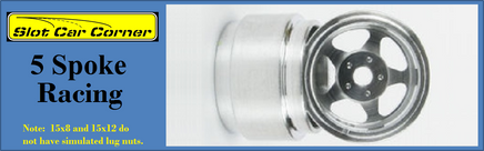 C.B. Design 5-Spoke Racing Wheels 17.3 x 11mm (Silver) are high-performance CNC machined aluminum wheels designed for a variety of 1:32 slot car applications. Similar in appearance to the C.B. Design 5-Spoke Classic Wheels but lighter weight. For best performance, we recommend: