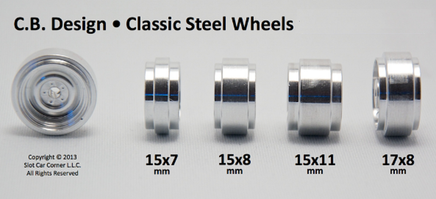 C.B. Design Classic Steel Wheels 14x6mm (Silver) are high-performance CNC machined aluminum wheels designed to look like stamped steel wheels ("Steely's").  For best performance, we recommend: