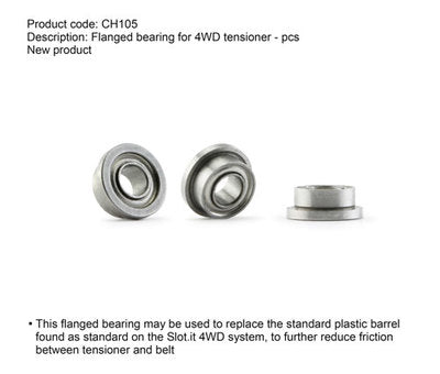 This flanged bearing may be used to replace the standard plastic barrel in Slot it's Four Wheel Drive System, to further reduce fiction between tensioner and belt
