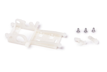 Slot.it Sidewinder Motor Mount 1mm Offset EVO6 designed for use with Slot.it SICH105b ball bearings (not included). Includes tabs and screws to convert the motor mount from traditional four (4) mounting points into the EVO6 compatible version with six (6) mounting points. Accepts Slot.it and 3rd party short-can motors.