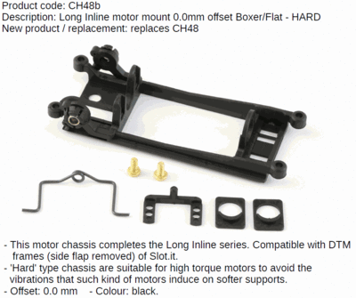 Slot.it HRS Chassis Long Inline Motor Mounting Pod for Boxer or Flat 6 Motors - Includes reinforcing metal brace and 2 x M2 Motor Mounting Screws. Long line Inline motor mount, 0.0mm offset Boxer/Flat HARD