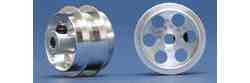 NSR Air System (Scale 16") 10mm wide 0.9 grams / wheel aluminum wheels - use only with NSR brand 3/32" (2.37mm) axles - uses #4-40 setscrews and 0.050" (1.3mm) Allen Wrench - 2 Wheels & Setscrews / package - recommended for rear axle use