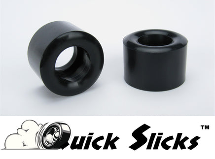 CB35F Fits: C.B. Design 15x8mm & 17x8mm Wheels Slot.it, NSR, Sloting+, etc. 15x8mm & 17x8mm Wheels. O.D.: 20.45mm (.807") Width: 9.15mm (.360") Description Quick Slicks are available in several high-performance silicone compounds for different combinations of track configuration, track surface, track power level, car/motor type, chassis setup, driving style and race strategy. Unlike our competitors' who only offer a single silicone compound, Quick Slicks gives you more tuning options by letting YOU decide which compound best meets your requirements. The Quick Slicks shown on this page are FIRM compound silicone tires. This simply means they have a higher Shore A rating than our soft and firm Quick Slicks compounds. Like all Quick Slicks, gluing and truing is NOT required. However, more serious racers will often glue/true their tires to improve tire performance and overall handling. Quick Slicks extra firm compound is the most durable of the three silicone compounds we offer. As such, more effort will be required should you decide to true and profile them. The extra firm silicone compound also results in a tire with a stiffer sidewall. Quick Slicks extra firm compound silicone tires are available for many popular 1:32 cars and wheels. Quick Slicks extra firm compound tires are also available for several 1:24 cars. Look for more Quick Slicks applications in the future. Not Sure Which Quick Slicks You Need? We've made finding the right Quick Slicks easy - just click on our exclusive Quick Slicks Tire Selector. Note: All trademarks are property of their respective owner.