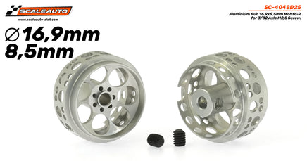 SC-4048D25 Aluminum rim 16.9x8.5mm. Monza-2 for 3/32 (2.38mm) axle. M2.5 screw. Weight 0.8gr.