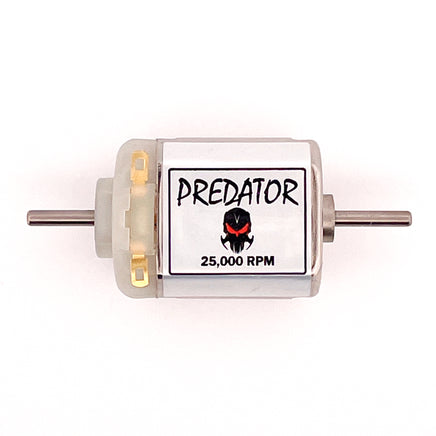 Predator Slot Car Motor featuring S-Can motor (FC-130) - rated at 25,000 RPM, 167 g-cm torque at 12VDC. Motor shaft OD is 2.0mm. Features include: